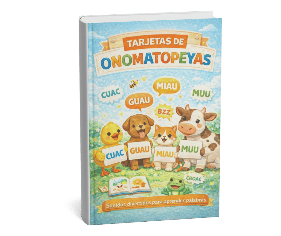Tarjetas de Onomatopeyas: ¡Mis Primeros Sonidos! Un recurso visual imprescindible para despertar el habla. Estas tarjetas están diseñadas para trabajar la imitación de sonidos de animales, objetos y acciones cotidianas. Son la herramienta perfecta para convertir el balbuceo en palabras reales de forma divertida y visual.